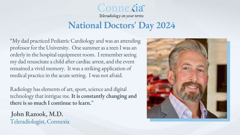 In celebration of National Doctors’ Day, meet Dr. Razook, one of our exceptional teleradiologists on the Connexia team. We asked Dr. Razook about what inspired his pursuit of radiology as a career, and why he loves working in radiology.